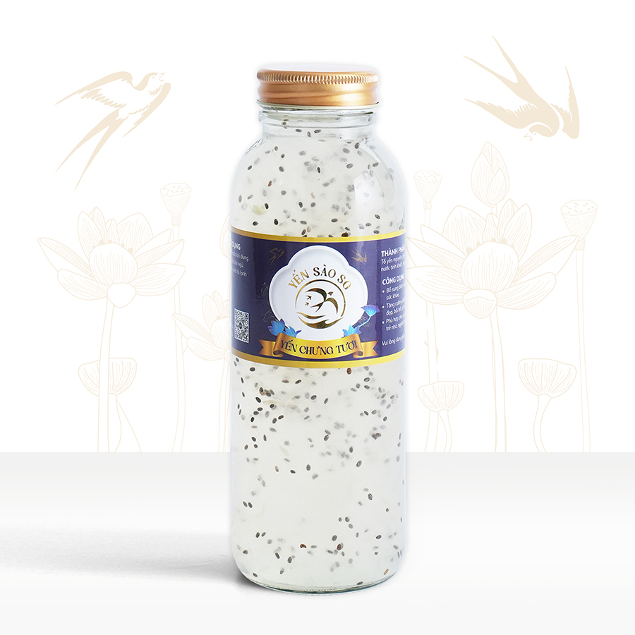 Yến nguyên chất 100 % , không chất phụ gia, không chất tạo mùi, được hấp cách thủy với hạt chia và đường phèn sạch.
