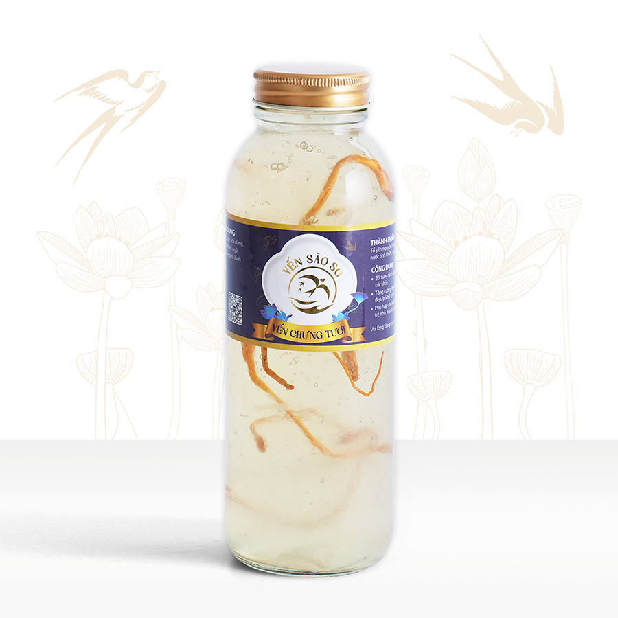 Yến nguyên chất 100 % , không chất phụ gia, không chất tạo mùi, được hấp cách thủy với nấm đông trùng và đường phèn sạch.