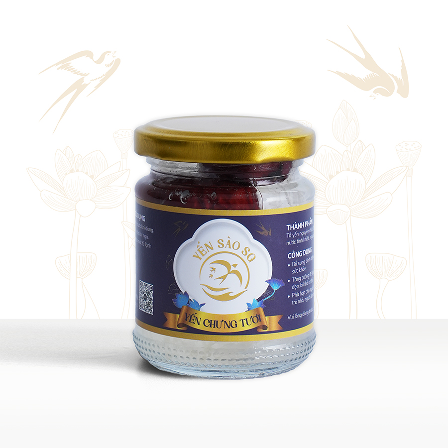Yến nguyên chất 100 % , không chất phụ gia, không chất tạo mùi, được hấp cách thủy với táo đỏ và đường phèn sạch.